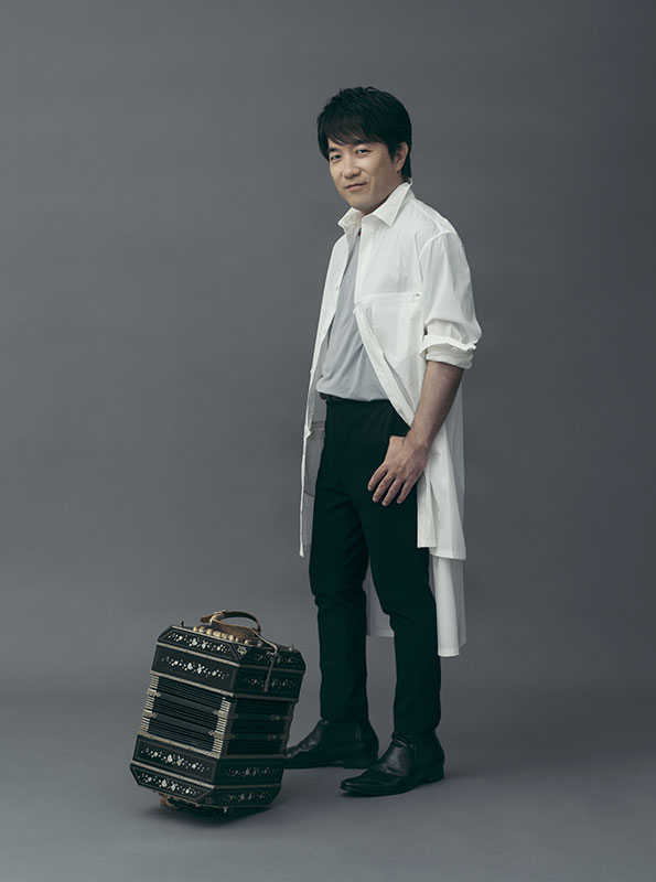 Born in Adachi Ward, Tokyo in 1973. Scorpio, blood type AB. Visiting Professor at Senzoku Gakuen College of Music. He displayed talent from his high school days, and provided bandoneon solo accompaniment for the legendary singer Ranko Fujisawa's final stage in 1991. Since his CD debut in 1998, he has achieved monumental performances in the tango world, including at Carnegie Hall and Buenos Aires, Argentina.